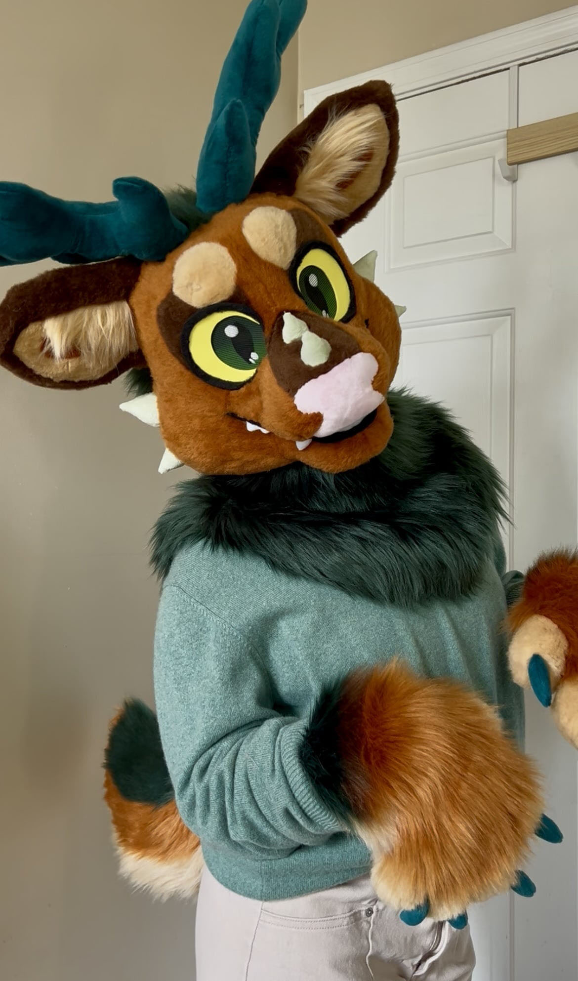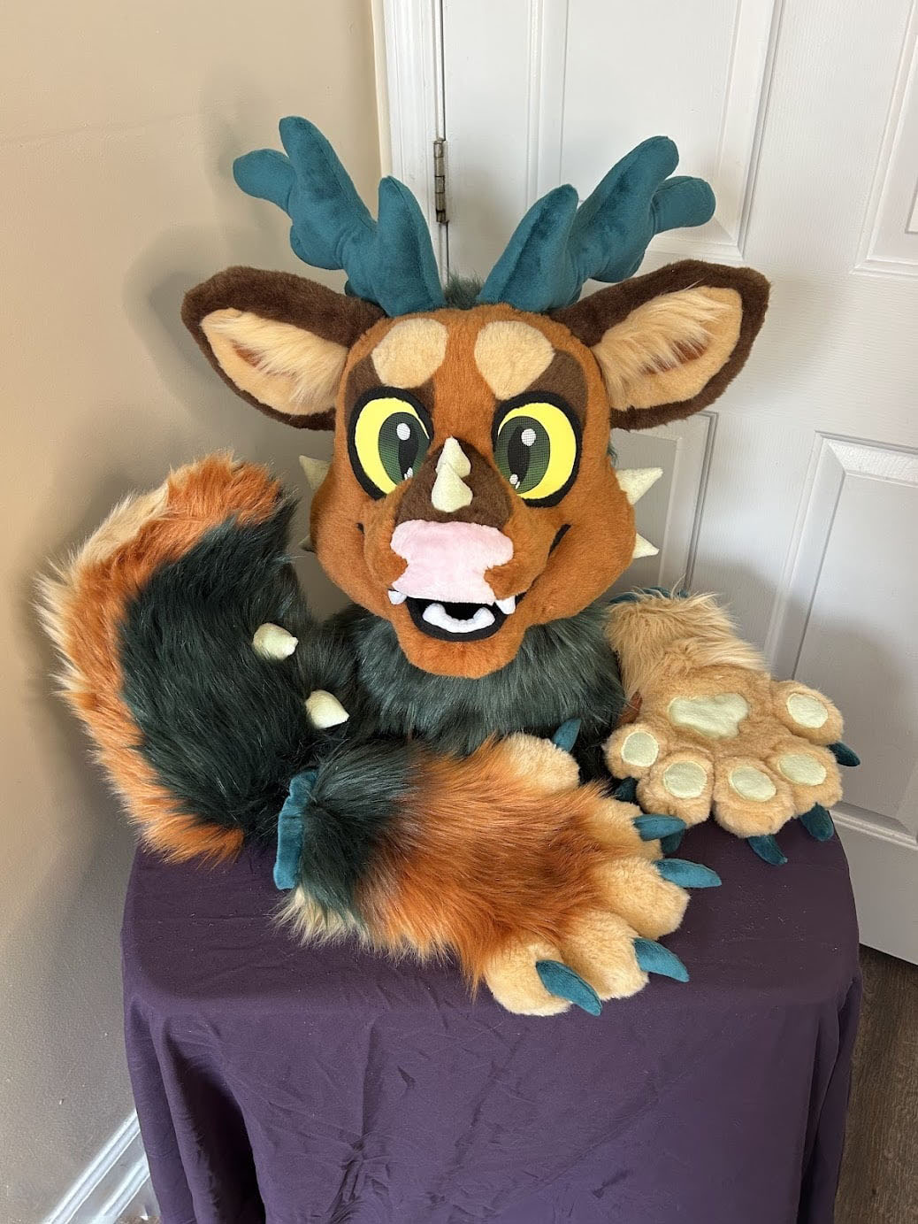 Includes fursuit head, hand paws, and large nub tail.